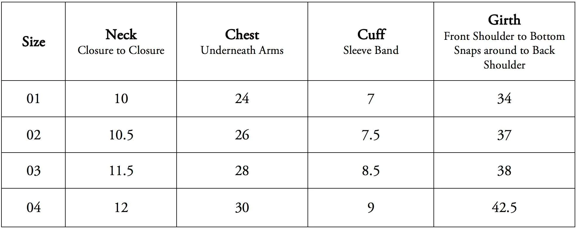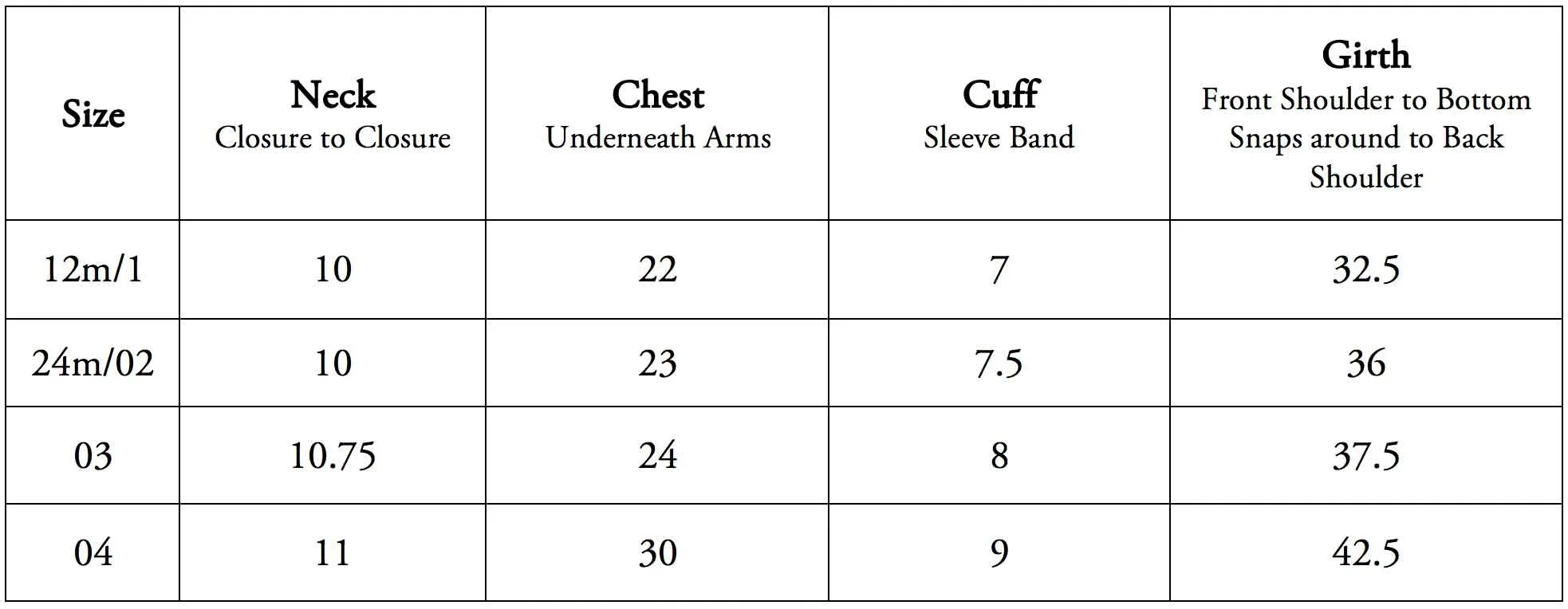Button On Suit (Without Cherries) Size Guide