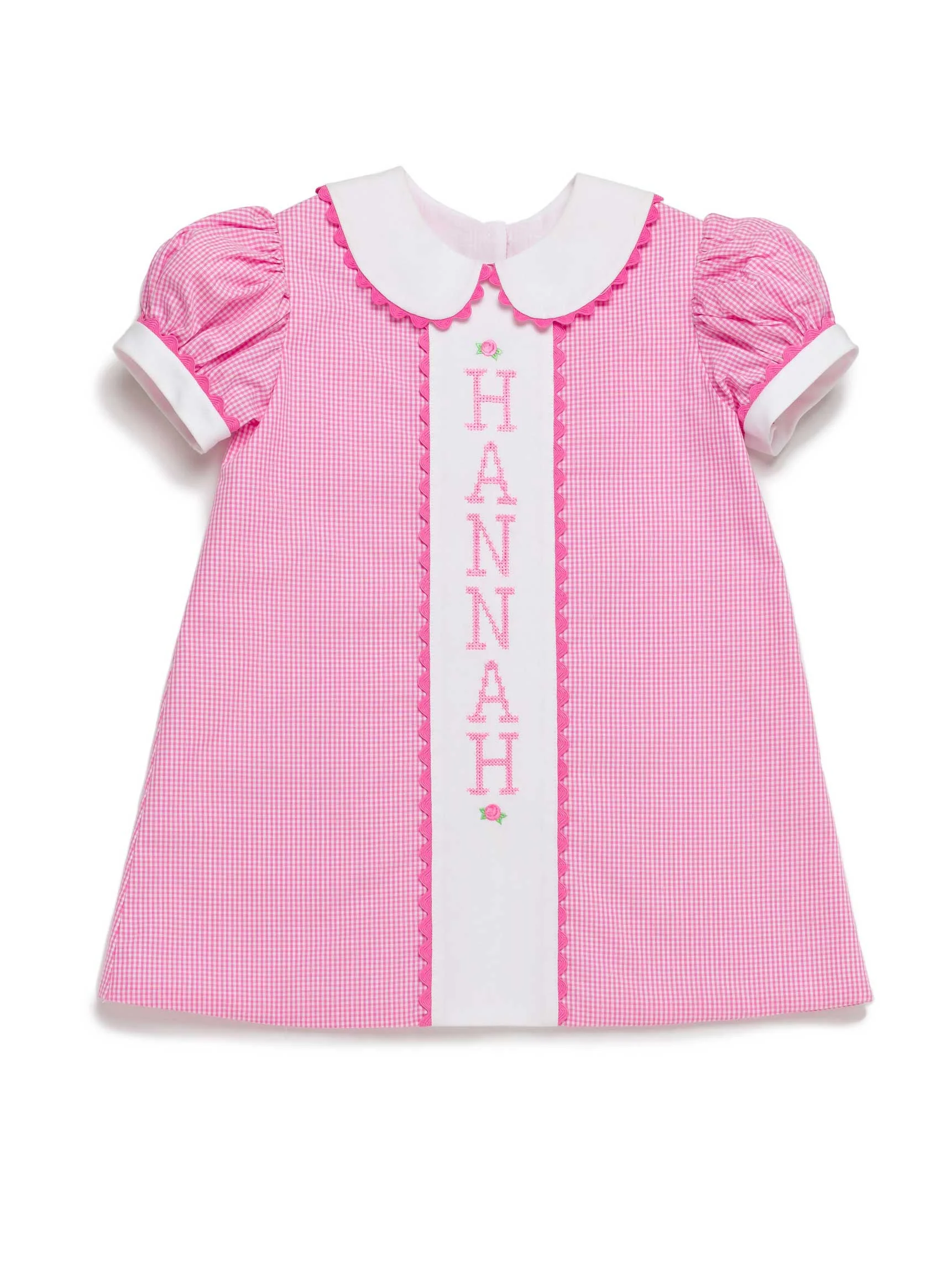 Rosette Panel Name - Pink Gingham With Pink Rick Rack